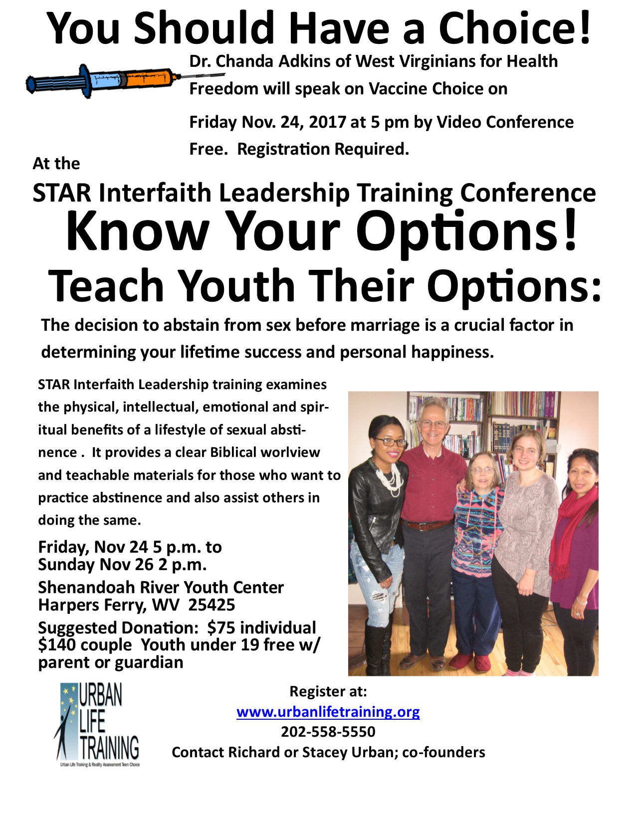 Dr Chanda Adkins, expert on Vaccines and Vaccine Choice will speak at the opening session of STAR Interfaith Leadership Training via Zoom teleconference on November 24th, 2017 in Harpers Ferry, WV. This session is free and open to all community members. Registration is required. Register here for Dr. Chanda Adkins only. Click Here to Register Now for Dr. Adkins presentation, only.