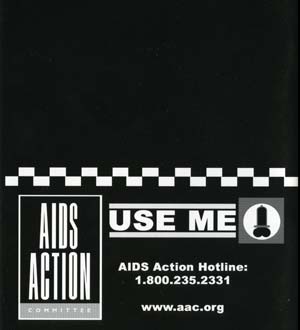 Back cover of booklet, with Aids Action Committee logo and contact information. |