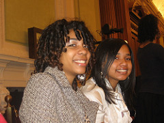 Angel (L) and Tierra, School Without Walls Seniors, testify at the City Council Youth hearing.