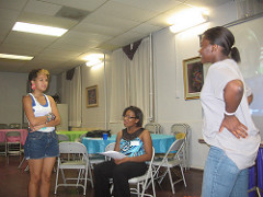 An ULTRA Teen Choice Training Seminar was held at Imani Temple in Northeast Washington, DC on June 5. Dijon(L) from Wilson Senior High School practices assertiveness skills with STAR Guide Ethleen Sawyer(R) from Howard University, while STAR Guide Erica Smith (center) from Howard University observes. Click here to see a slide show.