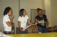 From left, Alexis, Daryn, and Brieanna during peer counselor training. |